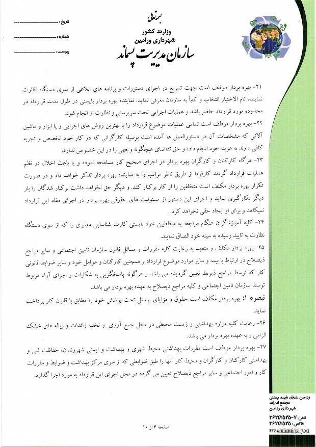 اسناد , قرارداد , مزایده جمع آوری ضایعات خشک سطح شهر